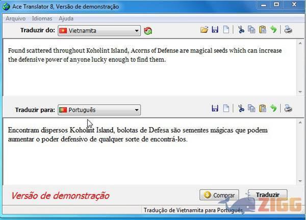 Rápido e com uma interface fácil de usar, no Ace Translator 8, basta o usuário inserir o texto desejado na caixa “traduzir do”. Neste campo você indica o idioma que deseja que o programa traduza e na caixa abaixo, “traduzir para”, o usuário terá rapidamente seu conteúdo traduzido.