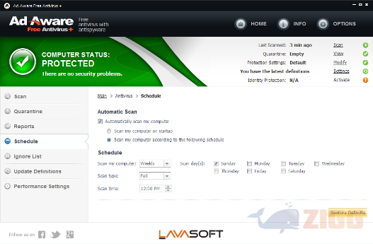 Existem 3 níveis de intensidade de scan no Ad-Aware Free Antivirus +: