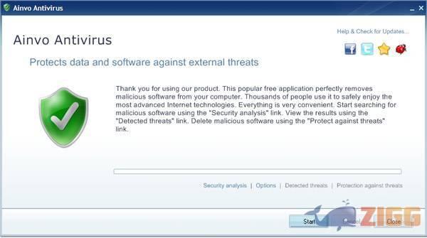 Diferente da maioria do antivírus tradicionais, o Ainvo Antivirus não substitui seu antivírus padrão, ao contrário, ele trabalha integralmente com o mesmo, funcionando como um ótimo reforço. Isto fica claro logo na tela de inicialização do software – na verdade é a única tela existente – consistindo de apenas quatro opções.