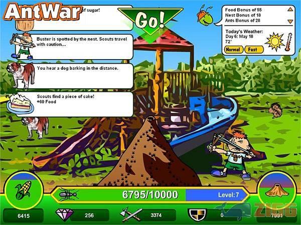 Não é fácil administrar uma colônia de formigas: há túneis para construir, comida para procurar, inimigos para liquidar e mais formigas para gerar. O Ant War faz de você o líder na construção e na manutenção de uma vibrante colônia de formigas. Mande seus Escoteiros saírem em busca de comida, certifique-se de que as Enfermeiras estão cuidando das pequenas formigas, ponha suas trabalhadoras para escavar e construa um poderoso exército nesta simulação com criadores de pequenos impérios da natureza.