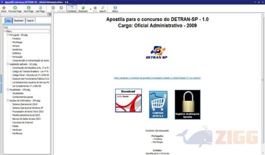 Ao término da instalação, abra o programa por meio do atalho criado em sua área de trabalho. Para acessar as matérias disponíveis, você precisará de um leitor de PDF, de preferência o Adobe Reader, disponível aqui mesmo no Zigg.