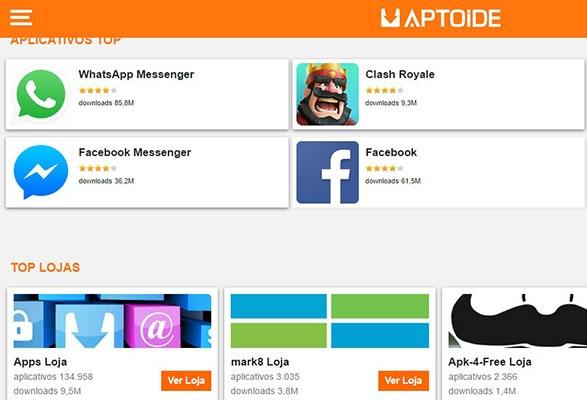 No Aptoide você encontra vários aplicativos do Google Play e de outras empresas independentes. A diferença é que os links de download de cada app disponibiliza a versão APK para instalar manualmente em seu smarpthone.