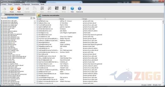 O programa apresenta uma interface bastante simples e muito direta, facilitando sua utilização pelos mais diversos usuários. Na lateral esquerda é possível colocar o endereço do servidor e buscar por grupos, basta clicar no ícone ao lado da caixa Servidor para que o programa faça a varredura dos grupos e exiba os resultados logo abaixo.