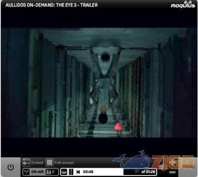 Depois ele abre um menu com diferentes categorias de programas que tenham sido gravados. Por exemplo, você pode selecionar trailers em espanhol. Se quiser retornar à programação normal, você só tem que pressionar o botão ON-AIR.