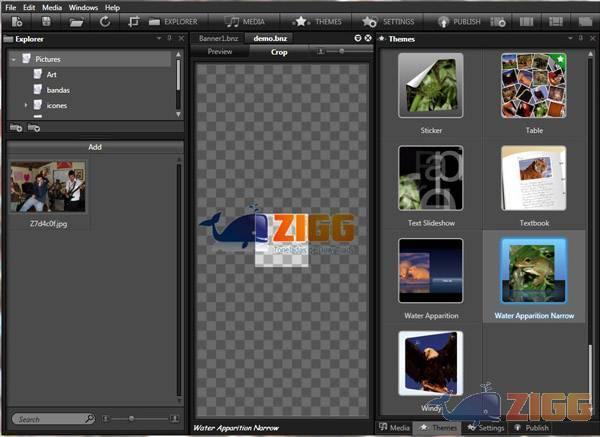 Você pode adicionar temas, animações rápidas e ainda consegue trabalhar diretamente com sites de redes sociais como Facebook, Orkut entre outros. Tudo o que precisa fazer é clicar, arrastar e soltar. Você pode adicionar temas em cada tipo de banner com um simples clique através das opções de uma galeria bem ampla que permite a você configurar a formatação das imagens do jeito que desejar.