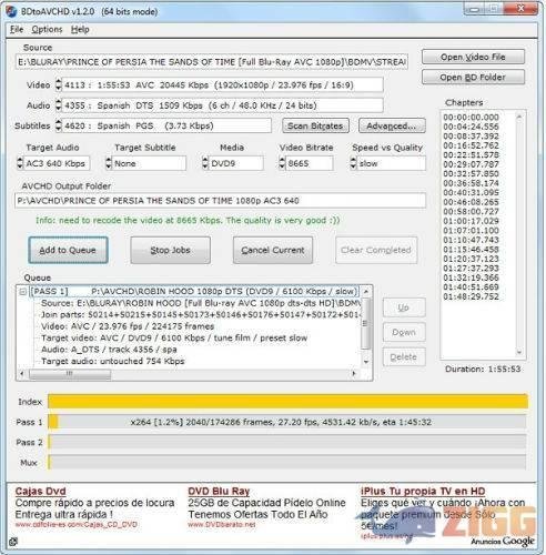 Ao escolher o drive do disco na opção Open Video File, o usuário verá uma série de informações a cerca do mesmo. Tais dados dizem respeito aos valores de AVC do vídeo e DTS do áudio. No campo ‘BDtoAVCHD Output Folder’ você escolhe o local em que o arquivo resultante será salvo.