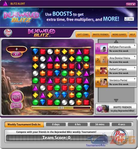 Bejeweled é um jogo do tipo quebra-cabeça que é um dos grandes sucessos aqui do Zigg e um dos preferidos por nossos usuários. Nós já cadastramos várias versões do game em nosso site e agora apresentamos uma que não precisa instalar nada em seu computador: o Bejeweled Blitz para Facebook.