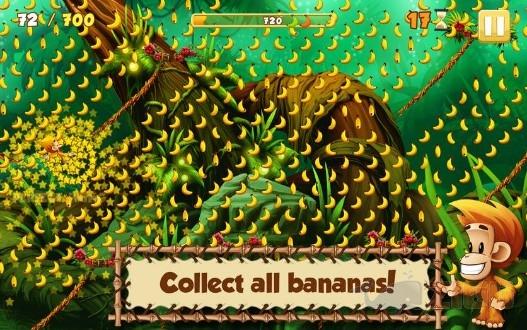 Em todas as missões que você terá, algumas irão pedir que você alcance determinadas alturas, outras irão pedir que você colete um número mínimo de bananas e, em algumas missões, você deverá chegar a grandes distâncias com um determinado número de saltos, igual ao jogo do tarzan. Sempre que você consegue atingir uma determinada pontuação, seu posicionamento no ranking melhora!