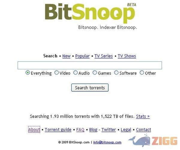 BitSnoop é um buscador de arquivos torrent que veio para ficar. Ele varre a internet em busca dos arquivos que você deseja, selecionando os links confiáveis para a sua busca, seja áudio, vídeo, jogos, software ou outros. Através de um algoritmo de busca chamado TrackerMatch index, ele consegue separar o que são os links “quentes” dos que são spam ou arquivos não confiáveis. Basta acessar o site e entrar com o nome do arquivo que você necessita. A cada 30 segundos são adicionados novos torrents que são rigorosamente analisados para eliminar erros e outros problemas potenciais.