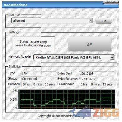 Assim, fique despreocupado quanto a escolha do seu gerenciador de torrents, pois o BoostMachine simplesmente irá conectar-se a ele e efetuar a aceleração do download. Além disso, sua execução é fácil, o programa é bem funcional e sua interface é super organizada, informando o tipo de conexão, o tempo em que o programa está ativado e a quantidade de bits enviados e recebidos. Entre os clientes gerenciadores de torrents mais conhecidos está o uTorrent, BitComent, BitTorrent, dentre outros.