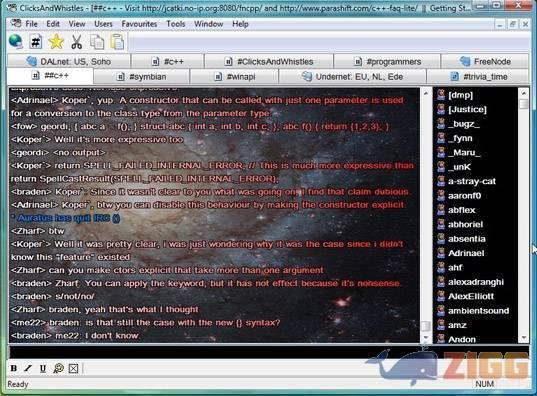 ClicksAndWhistles é um cliente de Internet Relay Chat (IRC) gratuito muito fácil de usar. Ele trabalha com mensagens no formato de texto em tempo real, permitindo o usuário comunicar-se em todos os canais das salas de chat. Ele possui a opção de enviar suas mensagens no modo privado também, sem que os outros usuários vejam.