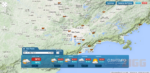 Caso queira acessar notícias sobre o tempo em diversos lugares do Brasil, clique no botão “notícias”. Se você quiser ver fotos de outras regiões, para ver como está o tempo, selecione a opção “galeria de fotos”. Os comandos de navegação no mapa são semelhantes aos do Google Maps: utilize o mouse e os botões na parte superior esquerda para navegar entre as regiões e verificar a situação meteorológica.