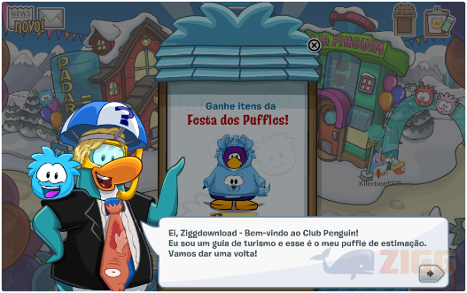 Assim que você tiver sua conta ativada, você só precisa realizar o login para começar a penguinar! Um Guia Turístico o ajudará a descobrir os locais mais importantes do Club Penguin: O Plaza com suas lojas, o Pet Shop, onde você pode adotar um Puffle de estimação, e Seu Iglu, que pode receber visitas de amigos para apreciarem sua decoração.