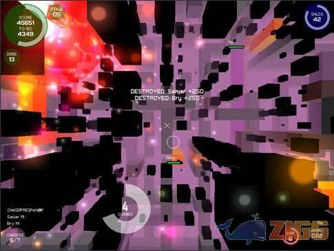 Com seus canhões laser, você controla uma nave bem ao estilo Tron neste game de ficção científica.