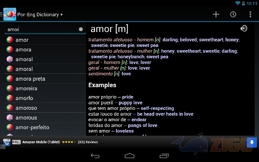 O aplicativo, que não requer o uso da internet, fornece mais comodidade para seus estudos ou pesquisas. Ele é mais que um simples tradutor de palavras, pois com o app você poderá aprender várias sentenças, com exemplos de frases e diálogos para a comunicação em diferentes situações, como pedir informações ou pegar um transporte. O dicionário ainda conta com um buscador para encontrar verbos e suas conjugações, incluindo todos os tempos e modos verbais para ambas as línguas. Aproveite as vantagens e instale um excelente dicionário em seu aparelho.
