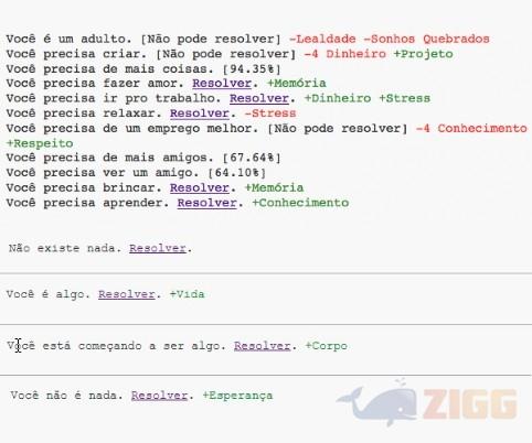 Ao iniciar, como já foi dito, você não existirá, não haverá sombras de você no universo, e mesmo clicando em resolver você continuará sendo um nada, porém haverá esperança de que um dia você se torne alguma coisa. Você precisa tomar uma atitude e clicar em resolver, mas essa ação não será definitiva, sempre existirá algo para ser resolvido até que você não exista mais. Toda vez que clicar em resolver algum problema você terá que esperar um carregamento para conferir o resultado de sua ação.