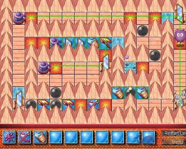 Conduza uma criaturinha roxa engraçada por níveis com obstáculos diferentes como espelhos, lasers, etc.