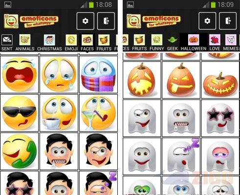 Cada uma das categorias possui vários emoticons para as mais diversas ocasiões. Use a criatividade e deixe suas conversas mais engraçadas. Ao clicar sobre um emoticon, ele será exibido em tamanho real na tela do celular, juntamente com as opções de compartilhamento.