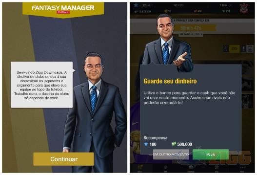 Quando chegar o momento de selecionar um time, você poderá criar uma equipe ou selecionar um dos clubes oficiais que estão disponíveis. Se você deseja criar algum time é preciso que você crie um nome e escolha um escudo para representar seu futuro time. Ao terminar sua escolha, você ganhará um time com diversos jogadores de clubes aleatórios e com um Cash inicial de 10.000.000 em dinheiro virtual. Durante o jogo você sempre terá um assistente mostrando o que você deverá fazer para não ficar perdido, e a cada missão realizada você receberá recompensas.