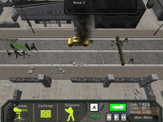 No início da rodada, o usuário recebe uma quantidade de dinheiro que deve ser utilizado para contratar as ferramentas de defesa. Colocar soldados com pistolas não geram custo algum, mas mantém um risco maior caso algum zumbi um pouco mais rápido chegue perto. Depois de armar seu campo de defesa, clique na seta do canto inferior direito para “liberar” as hordas de zumbis e torcer para que suas defesas funcionem.