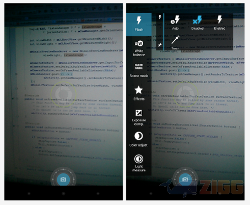 No “Modo de flash” existem quatro opções em que você poderá utilizá-lo. No modo “auto”, o flash é acionado de forma automática reconhecendo ambientes escuros e claros. Em “desativado”, o flash de sua câmera é desligado e não funcionará ao tirar fotos. Com a função “ativado” ligada, em toda captura de imagem, o flash é acionado para melhorar ainda mais a luminosidade de sua foto e no modo “tocha” o flash funciona como uma espécie de lanterna, funcionando mesmo antes de tirar qualquer foto.