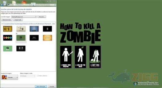 Clicando em Plano de Fundo da Área de Trabalho, o usuário poderá acessar as dez imagens contidas no tema e selecionar aquelas que deseja alternar em seu Desktop. É possível ainda alterar o tempo de transição entre as imagens já que, por padrão, o sistema define quinze minutos para este processo.