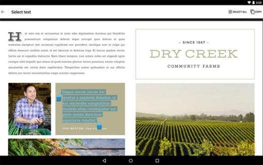 Para copiar trechos de um arquivo, basta manter o dedo pressionado sobre o texto desejado e arrastar as setas para o ponto de início e fim da seleção. Depois de selecionado, clique no ícone de duas páginas no canto superior direito.