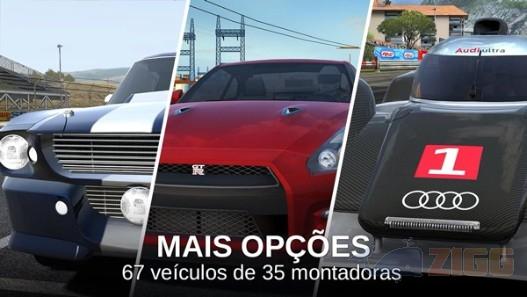 Para se tornar o melhor jogo de corrida para celular o GT Racing 2 adotou a estratégia de se aproximar o máximo possível do mundo automobilístico real e licenciou o total de 67 veículos para o jogo, além disto o jogo fez questão de aproveitar entre suas 13 pistas circuitos clássicos como Laguna Seca. Essa mistura gera um clima de velocidade muito proveitoso ao jogador, que terá a sensação de correr em carros reais contra pilotos do mundo inteiro.