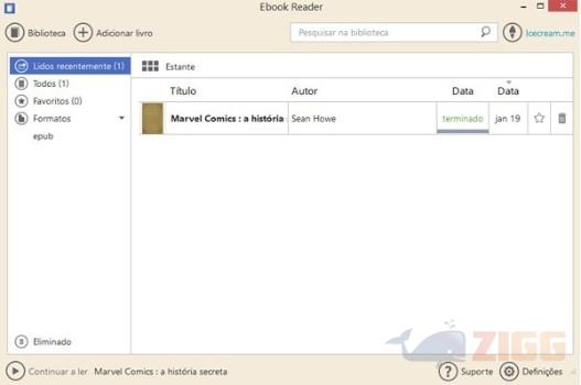 Além de EPUB, o programa ler arquivos no formato FB2, MOBI e dois formatos muito usados para ler HQs, o CBR e .CBZ. Dessa forma o Icecream Ebook Reader pode ser também um ótimo leitor de revistas em quadrinhos digitais.