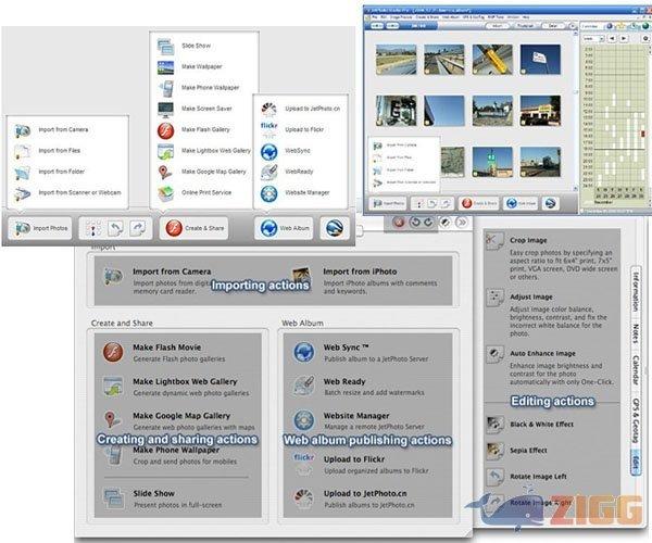 JetPhoto Studio é um software cheio de features e de fácil operação para quem quer mexer com foto digital, ele permite ao amantes da fotografia ou entusiastas ocasionais organizar, editar e compartilhar foto com flexibilidade. Com esse programa, o usuário pode criar galerias profissionais em flash ou acervos na Web, geo-tag photos com GPS e envia fotos para telefone celulares bem como publica álbuns na internet.