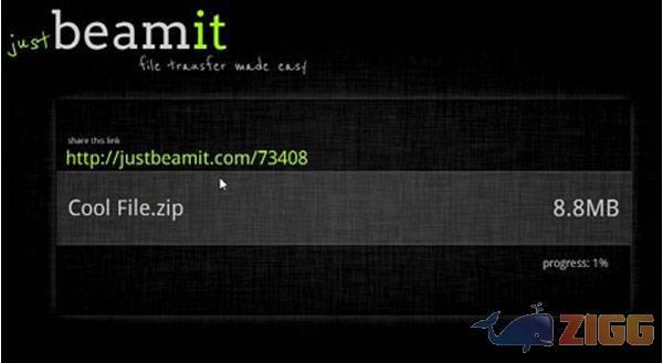O Just Beam It tem uma interface básica e intuitiva para qualquer usuário, além de ter um uso simplificado. O primeiro passo é clicar no botão de seleção de arquivo ou utilize o método de ‘Drag and Drop’, arrastando e soltando o arquivo. Após o upload do seu arquivo para o servidor uma URL será gerada.
