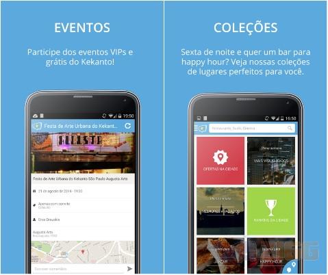Possua um guia de restaurantes, eventos, hotéis, bares, eventos entre diversos outros. No caso de restaurantes e estabelecimentos alimentícios é possível conseguir descontos ao utilizar os serviços do Kekanto. Aproveite seus recursos e melhore sua cidade, dando opiniões e ajude a montar esse mapa da boa vida.
