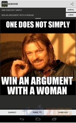 Na barra superior você também pode pesquisar uma imagem na memória do seu dispositivo e criar o seu próprio meme, digitando as frases normalmente. Quando você seleciona uma imagem do aplicativo ou da sua galeria, você abrirá o meme selecionado na tela de edição. Nesta tela, você pode escrever o texto que aparecerá na parte de cima e de baixo da imagem, em letras pequenas, médias ou grandes.