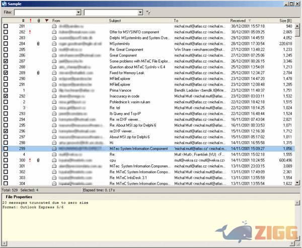 MiTeC Mail Viewer é um visualizador simples e fácil de usar para arquivos da caixa de entrada de e-mail. O software tem acesso ao banco de dados de mensagem com as terminações *. idx / *. mbx / *. Dbx. Ele pode acessar mensagem de bancos de dados em contas do Outlook Express, Windows Mail, Windows Live Mail e Mozilla Thunderbird, bem como arquivos EML únicos.