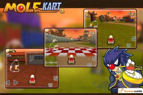 Com um traço lembrado animes como Doraemon e pegando um design semelhante a outros personagens de videogame, como Sonic e MegaMan, Mole Kart traz uma formula já manjada de jogos de corrida, com uso de itens e obstáculos na pista, e aproveita a comodidade praticidade de dispositivos touchscreen.