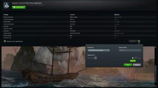 Uma novidade presente no sistema de configuração automática de jogo é o sistema que vai permitir ao usuário escolher entre qualidade e desempenho na seleção das configurações. Saiba que o foco do programa GeForce Experience é apresentar uma melhor taxa de FPS em seu sistema, e em muito casos a barra de qualidade e desempenho possui uma indicação de onde ela deverá ser posicionada para não prejudicar sua experiência com o jogos.