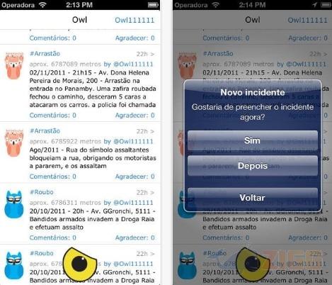 O Owl é um app que foi criado com o intuito de melhorar a segurança dos locais que você freqüenta. Nele usuários anônimos listam locais que foram pontos de ocorrências, como roubos, furtos, atividades suspeitas e muito mais! Ajude a identificar estes locais e deixar a cidade mais segura, e nem precisa se preocupar com sua identidade, pois seus dados não serão expostos!