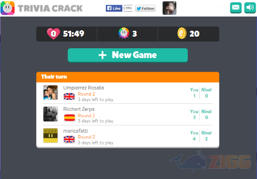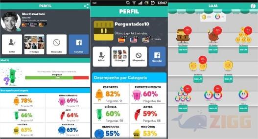 O objetivo nesse jogo-quiz é coletar 6 troféus, um para cada categoria – História, Artes, Geografia, Entretenimento, Ciências e Esportes. Depois de logar, na parte superior no canto esquerdo estará o Menu – aqui você pode visualizar seu perfil, que contém informações como em que nível você se encontra, o ranking semanal e o seu desempenho por categoria.