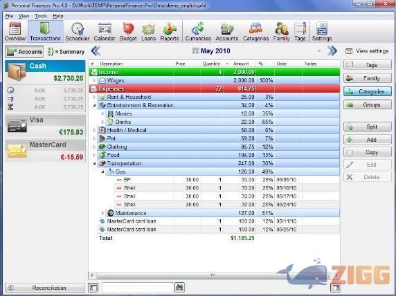O Personal Finances Lite é a versão portátil do Personal Finances, que já é bem conhecida por ser um software fácil e poderoso para controlar seu dinheiro.