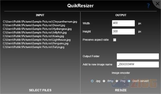 QuickResizer é um simples software para Windows que permite redimensionar fotos de uma maneira simples, funcionalidade ideal para usuários que precisam enviar as fotos do final de semana para seus amigos. Além da funcionalidade de redimensionamento de imagens, o QuickResizer pode ser útil também para converter imagens – juntamente com este processo de redimensionamento.