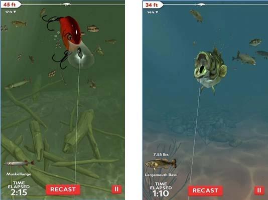 A jogabilidade é bem simples. Mova a vara de pesca para os lados, conforme é exibido no tutorial inicial, e arraste a vara para cima para lançar o anzol, tentando alcançar a distância ideal, conforme é exibida na barra superior. O diferencial no Rapala Fishing – Daily Catch é que você terá uma visão do anzol e poderá guiar a isca pela água para aumentar as chances de fisgar um peixe.