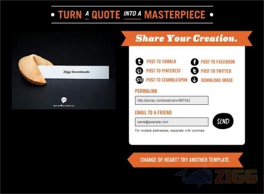 As imagens que surgem variam de acordo com o tamanho do texto digitado e, após clicar em Create, o usuário gera um link fixo para aquela montagem, facilitando um compartilhamento futuro. Se preferir, é possível compartilhar diretamente em algumas redes sociais – Facebook, Twitter ou Tumblr, por exemplo –, enviar por e-mail ou simplesmente efetuar o download da mesma.