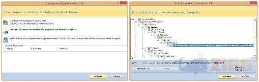 • Desinstalar: permite a varredura por arquivos associados ao programa desinstalado nos diretórios de registro e no seu disco rígido, eliminando vestígios de sua instalação;