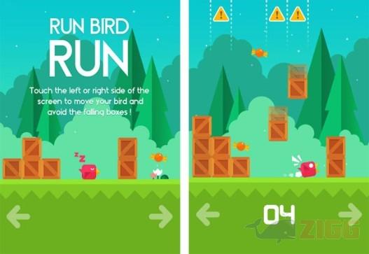 Sem poder voar, a única forma de se salvar com esse passarinho é correr. Sem fases para cumprir, o objetivo é sobreviver o máximo de tempo que puder. Quanto mais caixas evitar, mais pontos você acumula, e com eles poderá desbloquear novas fases, com cenários diferentes.