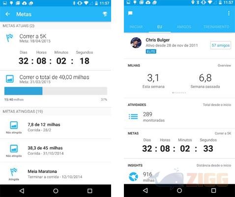 Todas as suas atividades e as de seus amigos podem ser visualizadas nas abas “Eu” e “Amigos”; ali é possível ver quantas milhas percorreu na semana e as metas batidas. Por fim, em “Configurações” você pode alterar o idioma, os sons, unidades de distância e outras opções.