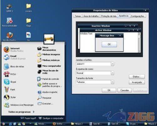 Acrescente estilo, e dê vida ao seu sistema operacional com Shiftie Striped. Com ele você irá renovar a aparência do seu Windows XP com tons em azul escuro e listas diagonais. Após a aplicação de Shiftie Striped, não são muitos os itens alterados. A barra de tarefas ganha um novo visual, mas a maior renovação se dá nas bordas das janelas abertas. Já o menu iniciar dá lugar a um símbolo multicolorido, enquanto a parte interna do menu quase não sofre alterações. Se você gosta de fontes pequenas e uma resolução de tela maior então esse tema é ideal para você.