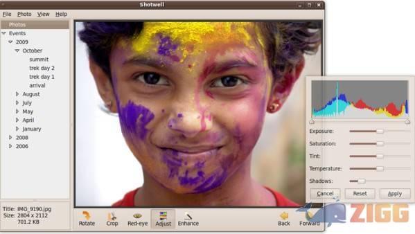 Comece agora mesmo a arrumar essa bagunça em seu PC. Utilize Shotwell e deixe suas fotos organizadas e sempre a mão. Afinal de contas, você não vai querer que o seu PC fique igual ao seu quarto ou escritório. Você também pode usar tags para organizar sua coleção de fotos. E mais, é possível girar, cortar, reduzir olhos vermelhos, e ajustar a exposição, saturação, matiz e temperatura de cada foto.