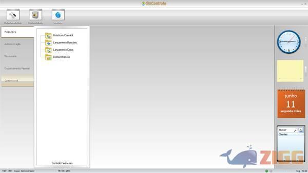 As principais ferramentas encontram-se ao lado esquerdo da tela. Entre elas você encontra opções para o financeiro, administração, tesouraria, departamento pessoal e o operacional de uma empresa. Fique à vontade para explorar todas essas opções e manter o total controle do seu negócio.