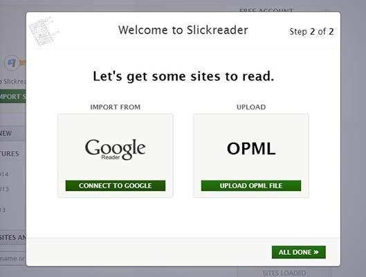 Depois de logado, o programa permite sincronizar seus feeds armazenados em sua conta do Google ou por meio de um arquivo OPML, importado de outro leitor. Após isso, suas categorias e notícias não lidas do dia serão exibidas imediatamente no novo leitor.
