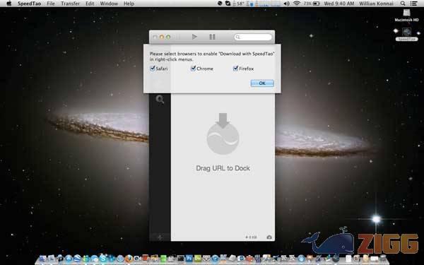 Speedtao é um programa de gerenciamento para o sistema OS X. Sua instalação segue o padrão do sistema: efetue o download do arquivo, monte a imagem e copie o programa para a pasta Aplicativos (Applications). O programa permite o gerenciamento de downloads convencionais, segmentados, Youtube, P2P, FTP, recursos de pausa e controle de banda.